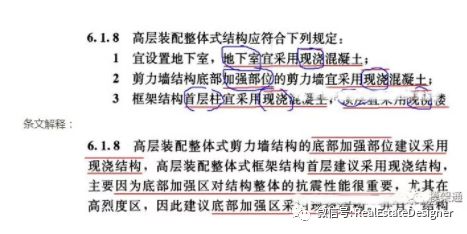 保证结构抗震性能的关键受力部位不适合采用预制。